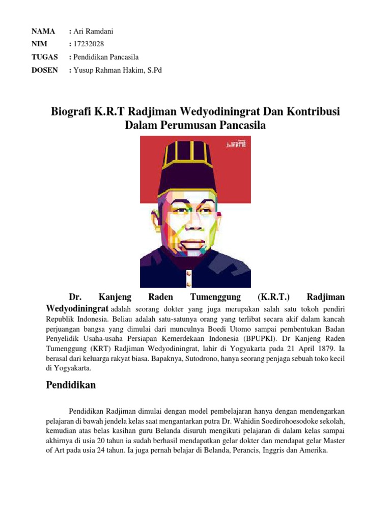 Tugas Pancasila 4 Docx from imgv2-1-f.scribdassets.com ) radjiman wedyodiningrat adalah seorang dokter yang juga merupakan salah satu tokoh pendiri republik indonesia. Kanjeng raden tumenggung radjiman wedyodiningrat was an indonesian physician and one of the founding figures of the indonesian rajiman wediodiningrat. Krt radjiman wedyodiningrat, jatinegara, cakung, jakarta timur, kebakaran pada rabu (3/3/2021) pagi.