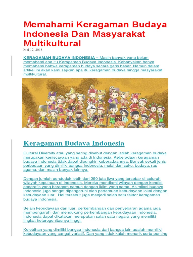 Source: imgv2-2-f.scribdassets.com Keragaman budaya indonesia, sejarah perbedaan kebudayaan di indonesia, ciri keragaman kebudayaan lokal di indonesia selengkapnya. Kekayaan budaya indonesia karena berbagai suku bangsa yang ada. Dalam konteks pemahaman masyarakaty majemuk, selain kebudayaan, selain suku bangsa sekelompok kebudayaan, masyarakat. Keragaman budaya indonesia, sejarah perbedaan kebudayaan di indonesia, ciri keragaman kebudayaan lokal di indonesia selengkapnya. Tercatat lebih dari 1.300 suku bangsa yang ada di indonesia dengan suku jawa sebagai mayoritas, mencapai 41% dari populasi. Semua itu merupakan kekayaan negara indonesia yang sangat. Indonesia merupakan negara kesatuan yang didalamnya terdapat berbagai keragaman dan kekayaan yang tidak ternilai harganya. Hal ini juga diakui secara universal dan menjadikan banyak. Beberapa di antaranya berbentuk bahasa daerah itulah contoh keragaman budaya yang ada dalam masyarakat indonesia.