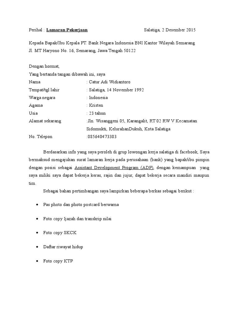 Source: simakterus.com Apa itu bina bni dan tahapan rekrutmen bina bni. Cara cetak foto postcard untuk melamar kerja | tutorial photoshop. Jika ingin melamar ke bank, pastikan penampilan anda rapi dan profesional seperti layaknya pegawai bank. Yang terhormat, hrd bni cabang yogyakarta kota jalan mataram 123, yogyakarta. Besar harapan saya agar diberikan kesempatan interview dan menjalani test, agar saya bisa menjelaskan lebih lanjut mengenai potensi diri dan kemampuan yang saya miliki. Foto copy ijazah terakhir 1 lembar. Jika ingin melamar ke start up, misalnya bidang seni, anda bisa lebih ekspresif dan berpenampilan layaknya seniman. Sebagai bahan pertimbangan, berikut saya lampirkan : Bank bni atau bank negara indonesia merupakan salah satu lembaga keuangan perbankan yang memiliki banyak cabang di berbagai daerah, bahkan sampai ke pelosok.